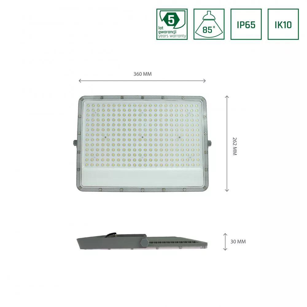 A SpectrumLED (SLI029058CW_PW) a nyers erő és a technikai tisztaság megtestesítője. A 150W-os teljesítmény és a 6000K-es hideg fehér fény párosítása tökéletes választás nagy kiterjedésű ipari területek, telephelyek és parkolók megvilágítására, ahol a látási viszonyok nem ismerhetnek kompromisszumot. Az elegáns szürke alumínium ház és az IP65-ös védettség garantálja a tartósságot és a megbízhatóságot a legzordabb kültéri körülmények között is.
