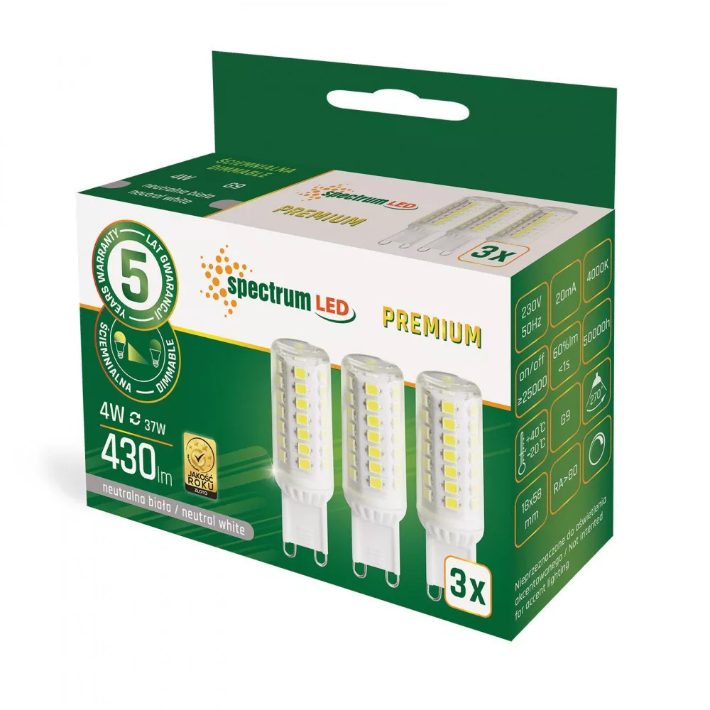 4,9W 3000K G9 dimmelhető LED fényforrás SpectrumLED