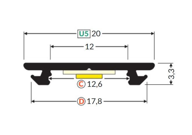 Belső mérete 12mm, akár az RGBW LED szalag is beépíthető. ("C" klikk fedéllel max. 10mm).