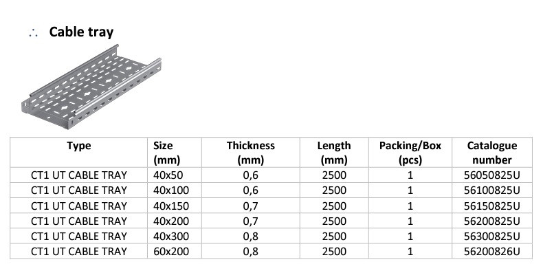 CT1 UT kábeltálca M:40mm SZ:300mm V:0.7mm H:2500mm Elmark