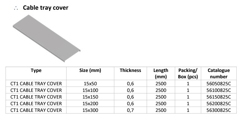 CT1 kábeltálca fedél M:15mm SZ:200mm V:0.6mm H:2500mm Elmark