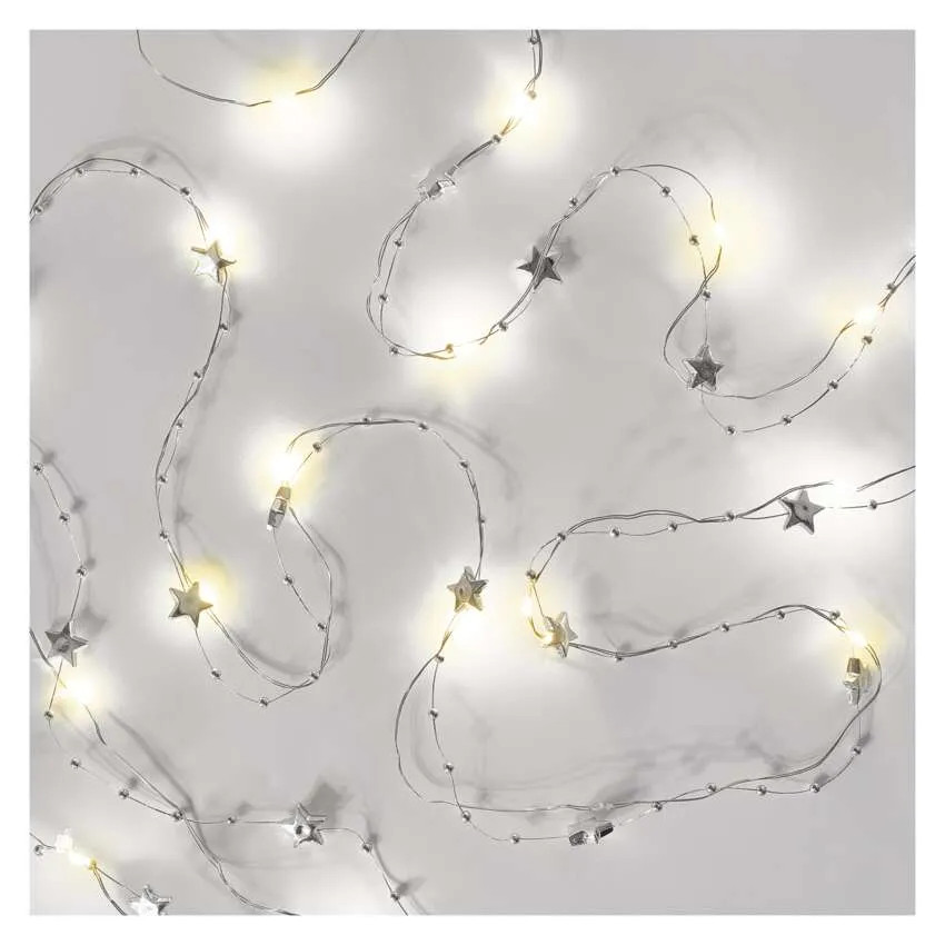 LED karácsonyi fényfüzér ezüst csillagok 1,9 m 2xAA IP20 meleg fehér időzítő Emos