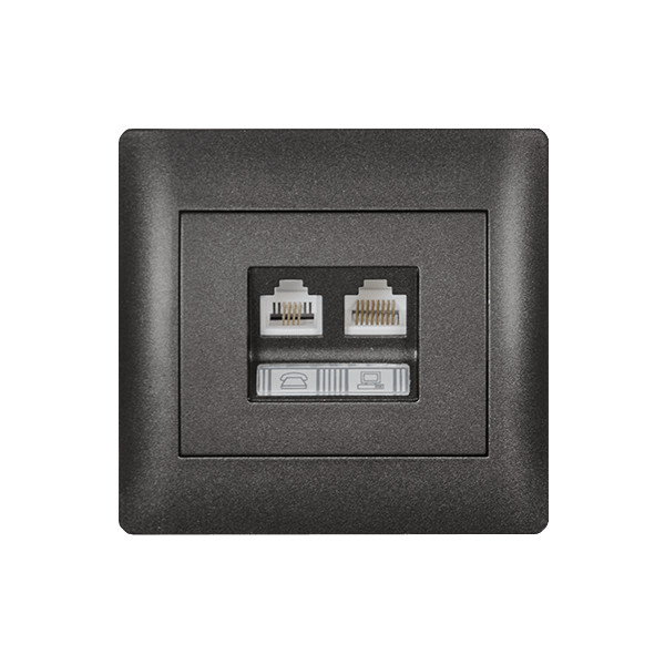 Rhyme telefon aljzat + számítógép hálózati aljzat grafit metál Elmark