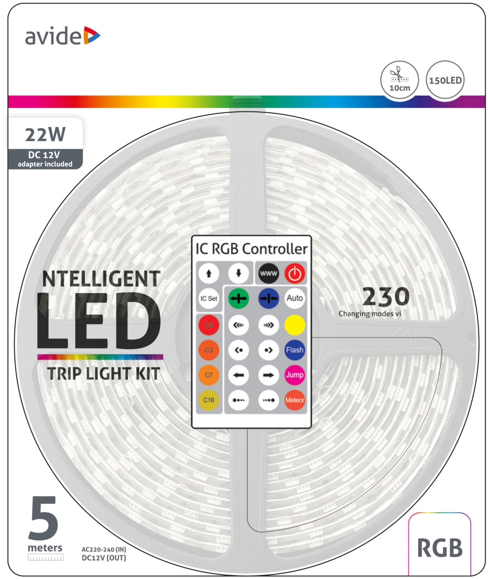 7,2W RGB IP65 LED szalag bliszter cimezhető 5M Avide