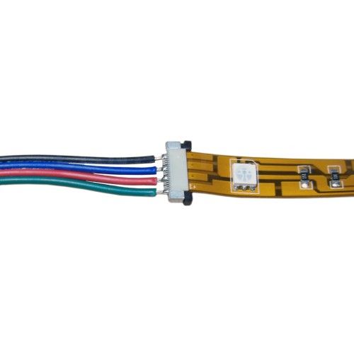 10mm széles RGB LED szalaghoz pattintós csatlakozó. Forrasztást nem igényel. Mivel közvetett kötéssel (nem forrasztással) valósul meg a LED szalag csatlakoztatása ezért ez a csatlakozó csak kis összteljesítményű LED szalagnál alkalmazható, nagy teljesítmény esetén a csatlakozó szétolvadhat illetve a LED szalag is sérülhet, ami garancia vesztéssel jár.