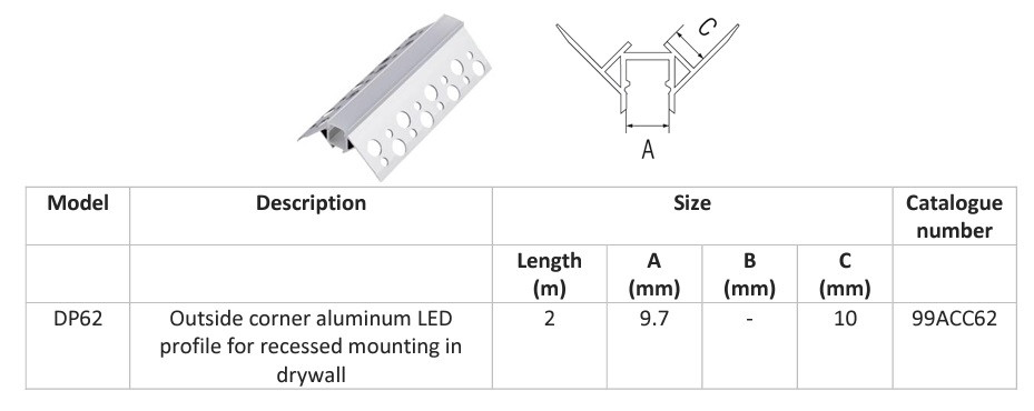 Alumínium profil gipszkartonba süllyesztve külső sarok Elmark
