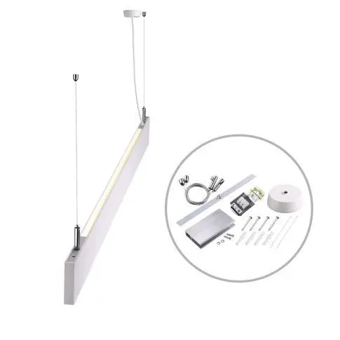 Fényáram lefelé: 2550lm, fényáram föfelé: 750lm, lineáris csatlakozó mellékelve, a lámpatest jelenleg matt burkolattal van felszerelve - a prizma burkolat mellékelve van.